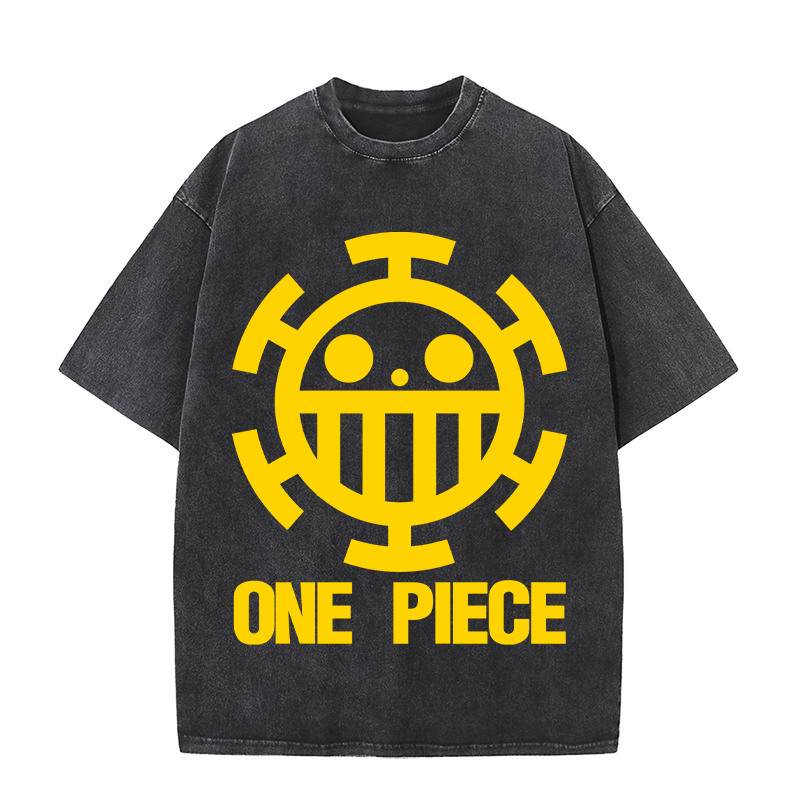 Anime cartoon Wholesale One Piece 100%Cotton Washed Solid Color plus size Unisex Oversize Short Sleeve T-Shirt
