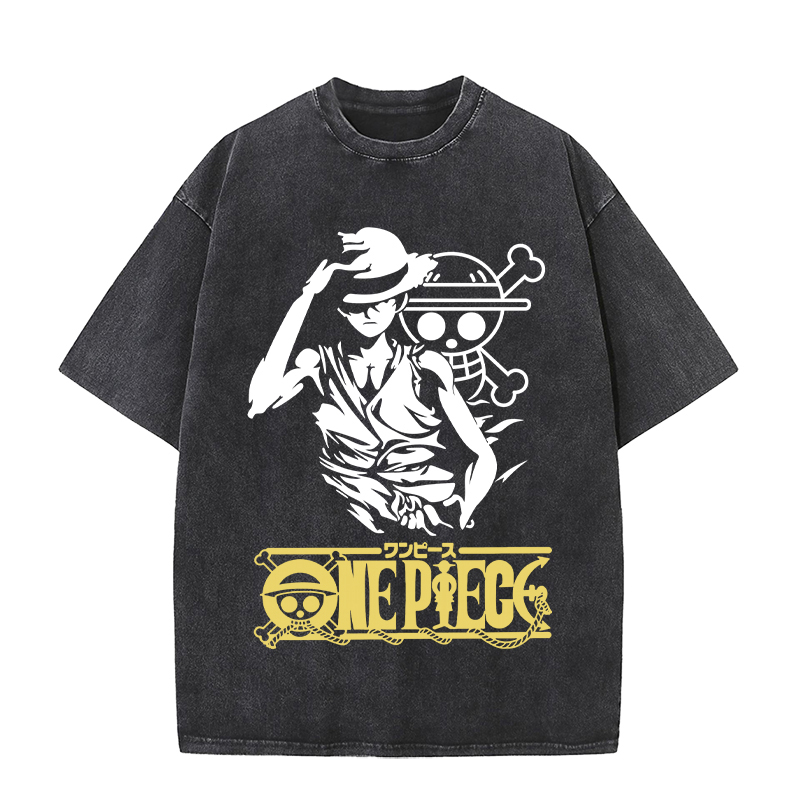 Anime cartoon Wholesale One Piece 100%Cotton Washed Solid Color plus size Unisex Oversize Short Sleeve T-Shirt