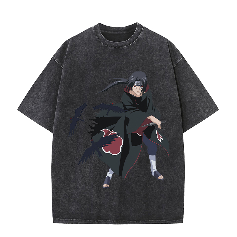 Name:Anime Wholesale Naruto Cotton Washed Solid Color Unisex Oversize cartoon Printing Short Sleeve T-Shirt clothes