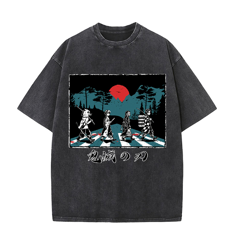 Anime Wholesale Demon Slayer Cotton Washed Solid Color Unisex Oversize cartoon Printing Short Sleeve T-Shirt clothes