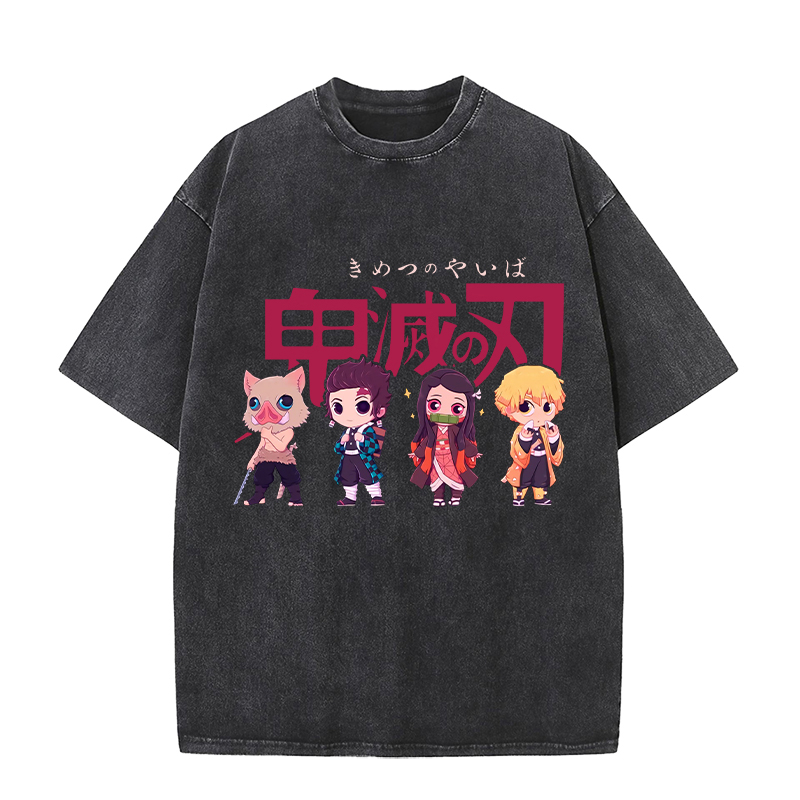 Anime Wholesale Demon Slayer Cotton Washed Solid Color Unisex Oversize cartoon Printing Short Sleeve T-Shirt clothes