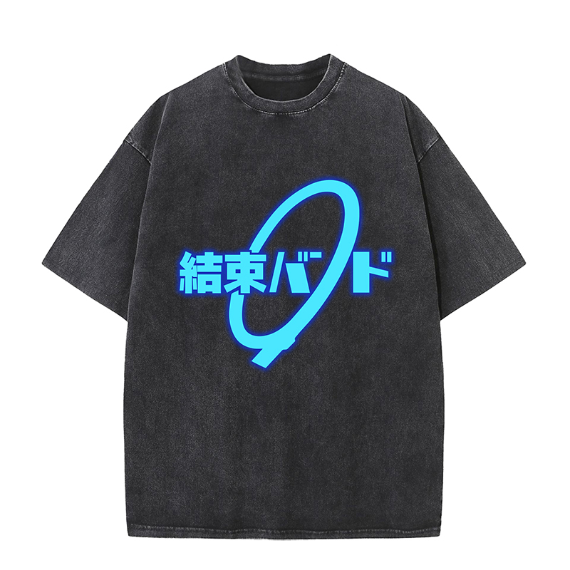 Anime Wholesale Lonely Rock Cotton Washed Solid Color Unisex Oversize cartoon Printing Short Sleeve T-Shirt clothes