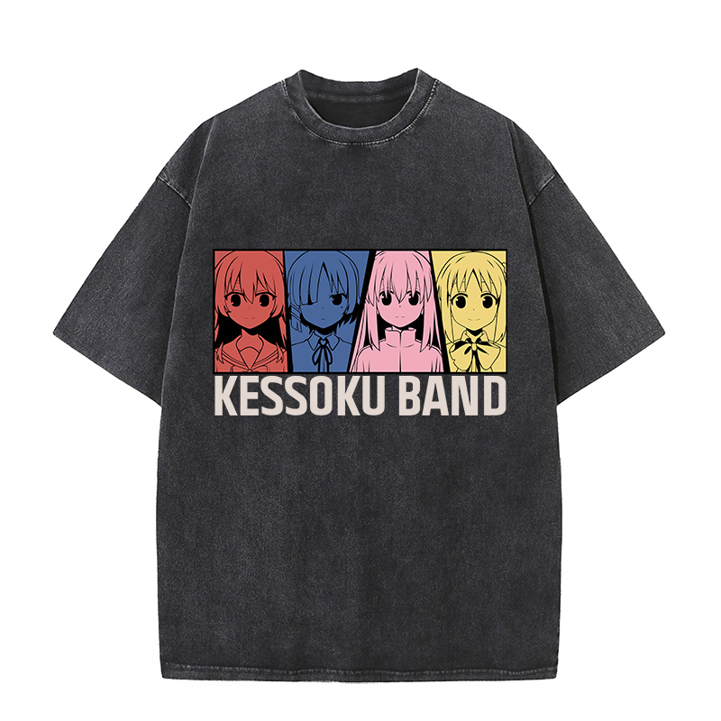 Anime Wholesale Lonely Rock Cotton Washed Solid Color Unisex Oversize cartoon Printing Short Sleeve T-Shirt clothes