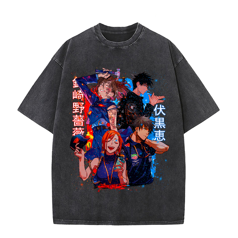 Anime Wholesale Jujutsu Kaisen Cotton Heavy Washed Solid Color T-Shirt Short Sleeve Oversize t shirt clothes