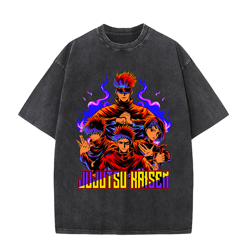 Anime Wholesale Jujutsu Kaisen Cotton Heavy Washed Solid Color T-Shirt Short Sleeve Oversize t shirt clothes