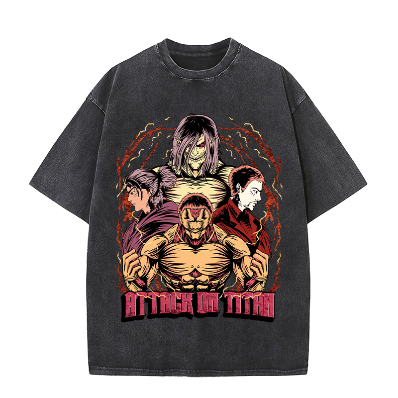 Name:Anime Wholesale Attack on Titan 100%Cotton Washed Solid Color T-Shirt plus size unisex Short Sleeve Oversize t shirt