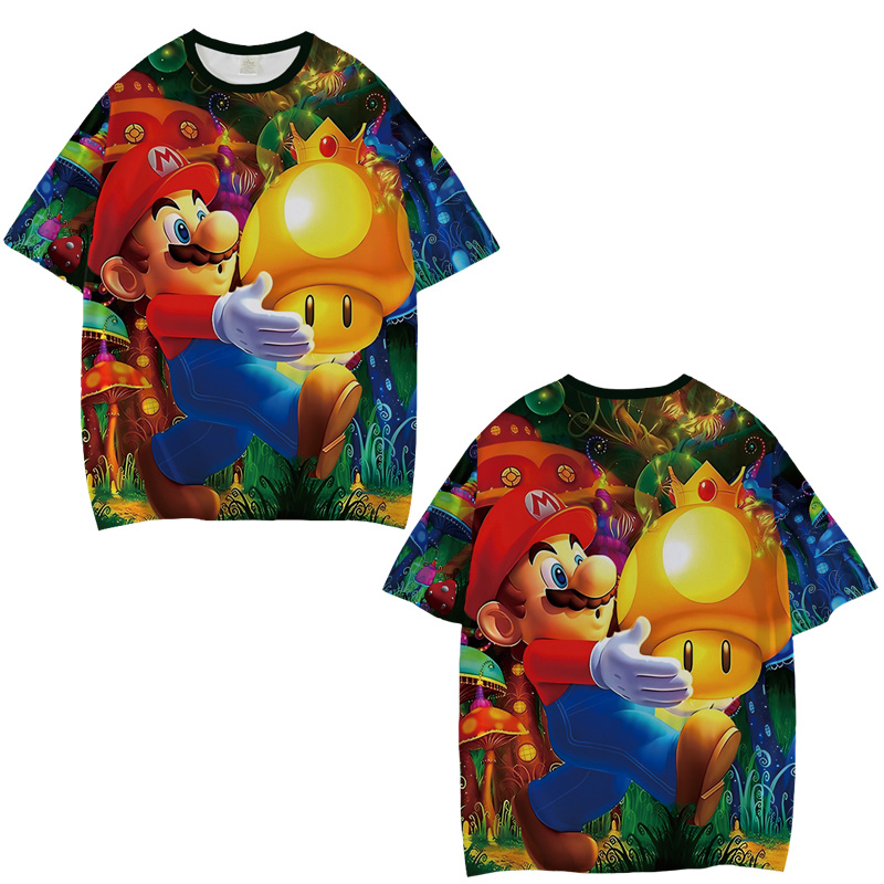 Name:Anime Wholesale superMario Short Sleeve Polyester Sports T-shirt All Over Printing 3d Digital Printed T-shirt Tees
